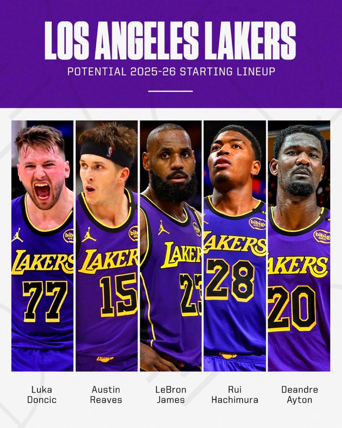 年轻核心:东契奇(26)、里夫斯(27)、艾顿(27)、八村垒(27)和克内克特(24)