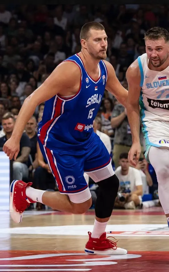 塞尔维亚队尼古拉-约基奇在这两场比赛中均穿着国家队配色361° Joker1 PE。